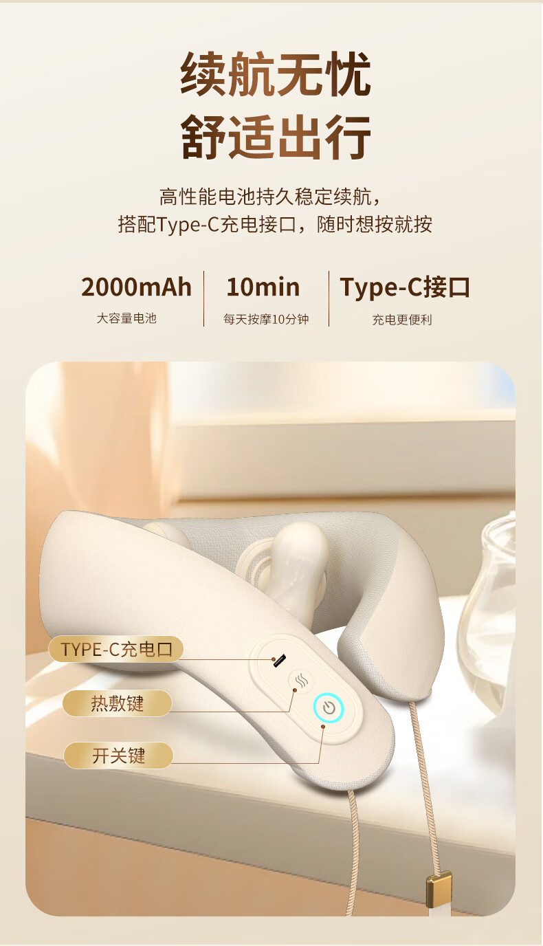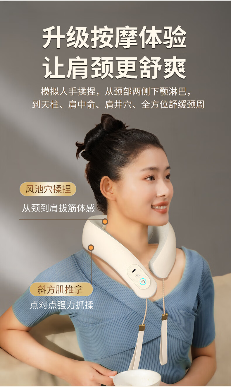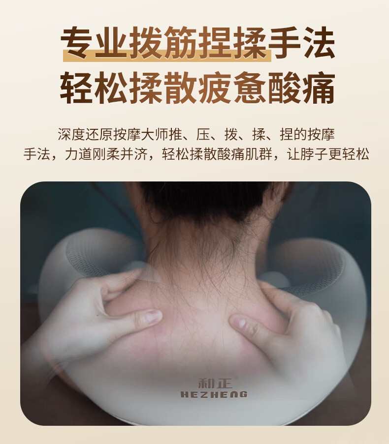 【京东同款】【京东同款】和正颈椎按摩器仿人手揉捏脖子肩颈按摩仪 富贵包U型枕家用