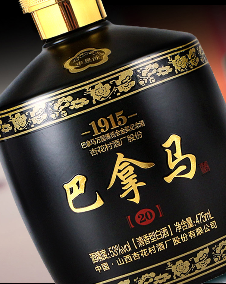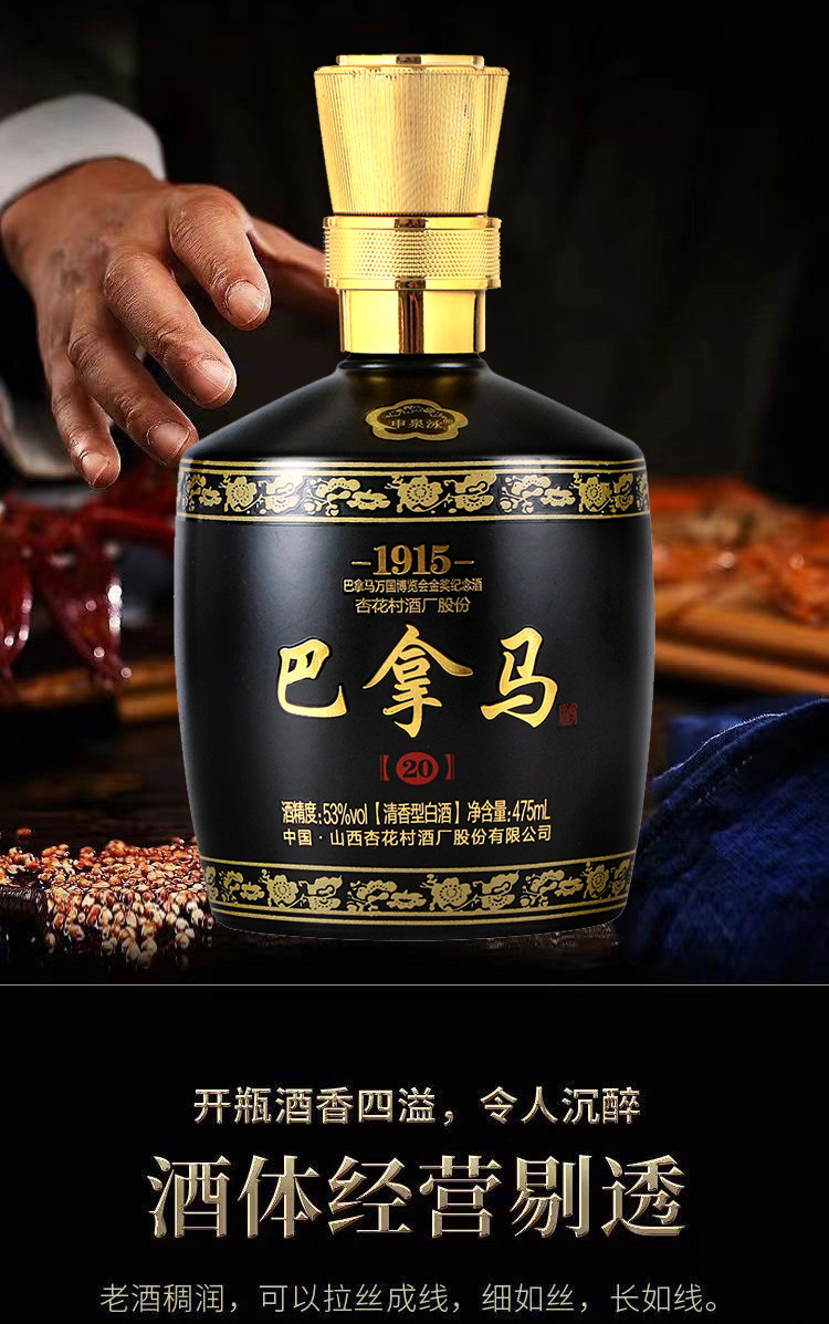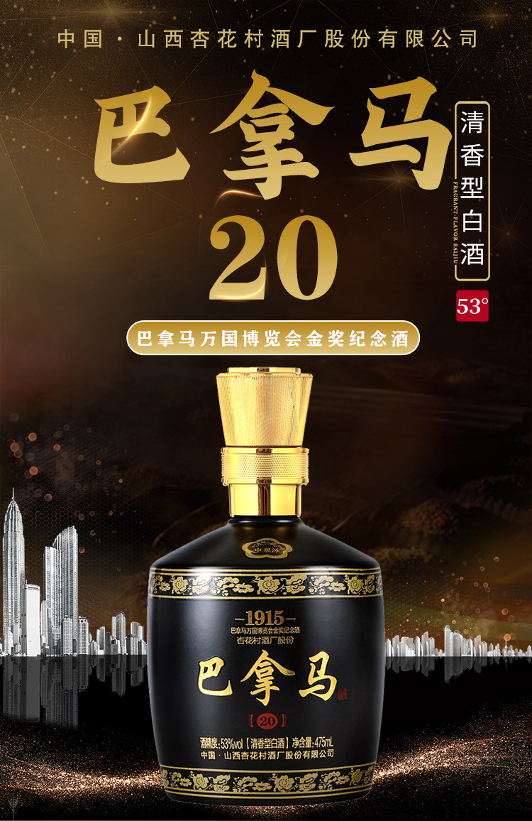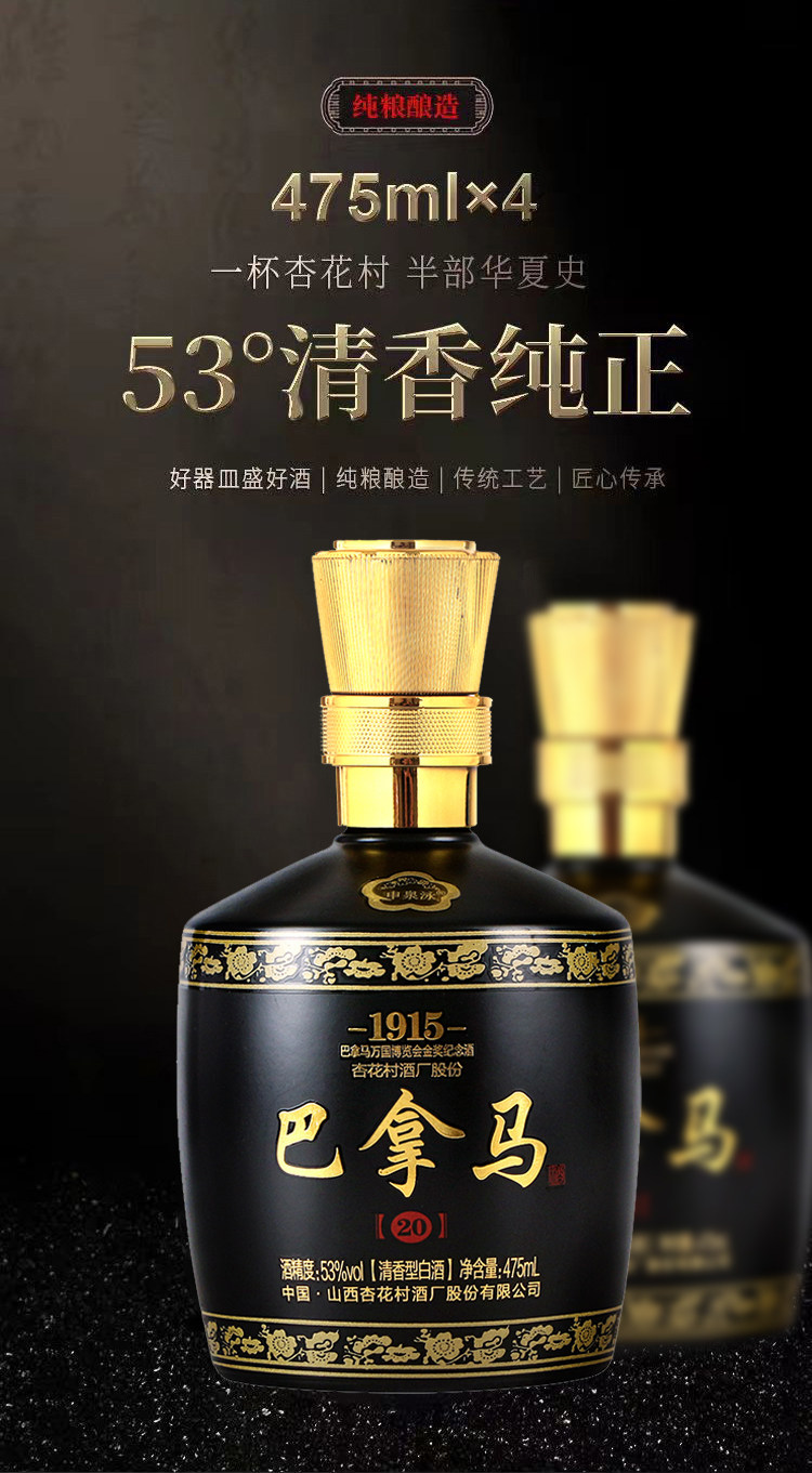 杏花村 巴拿马20酒53度清香型白酒475ml*4瓶