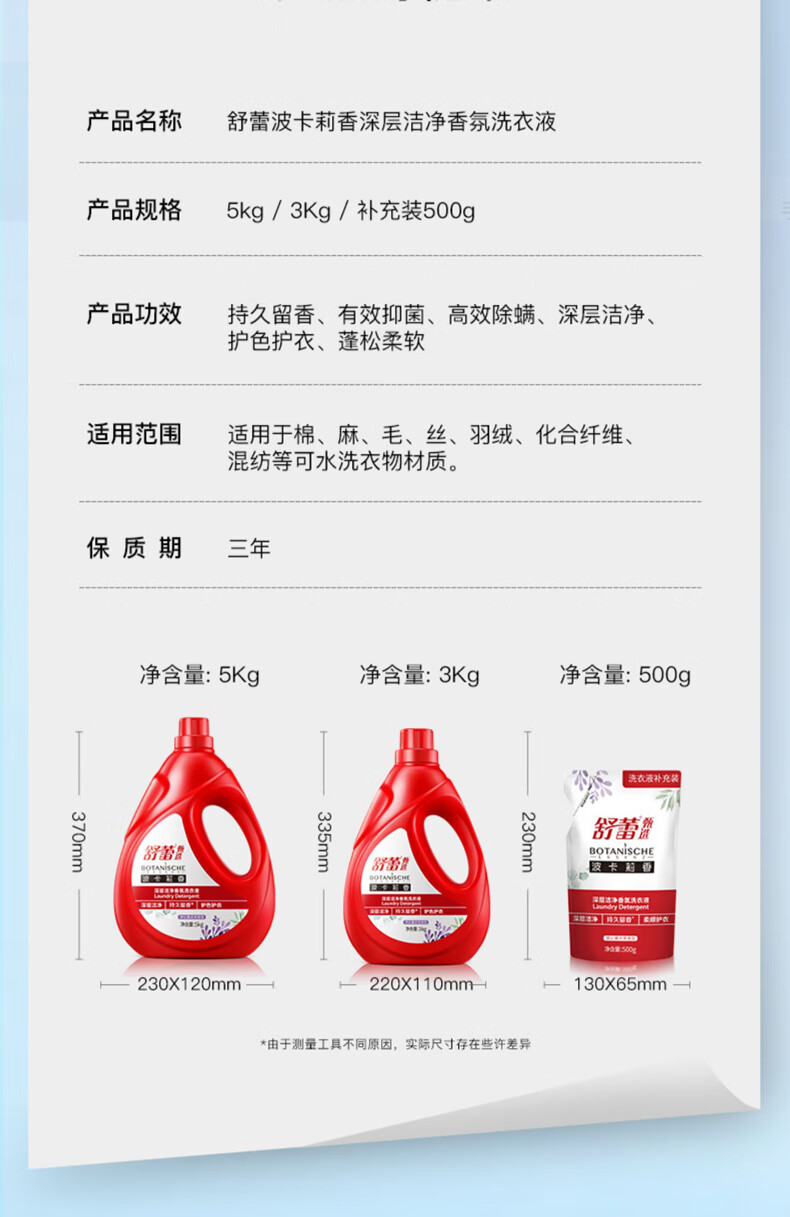 【京东同款】【京东同款】舒蕾洗衣液5kg波卡莉香深层洁净香氛除菌袋装补充装 袋装