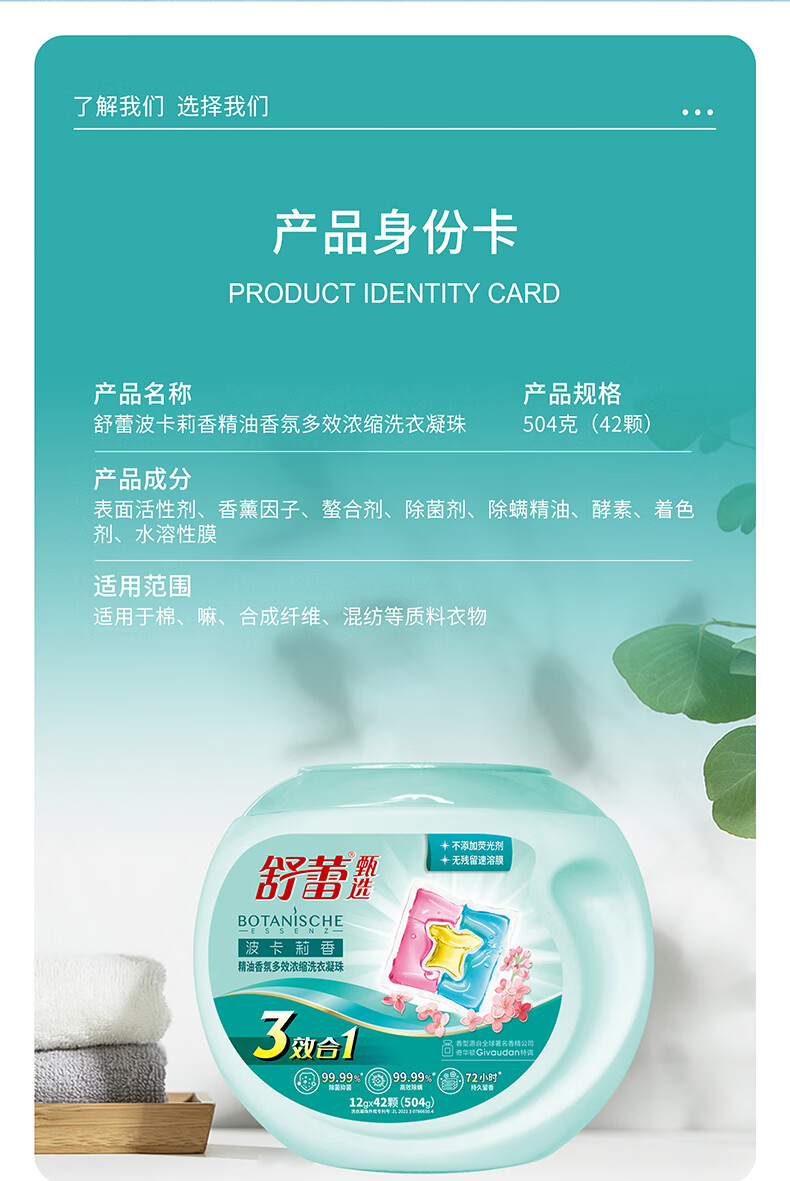【京东同款】【京东同款】舒蕾洗衣凝珠除菌除螨去污多效三合一持久留香波卡莉香精油浓